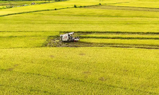 海南省海口市琼山区云龙镇,早稻陆续成熟,收割机正在收割水稻。视觉中国 资料图5月14日,澎湃新闻(www.thepaper.cn)从中国气象局获悉,近日,农业农村部会同水利部、应急管理